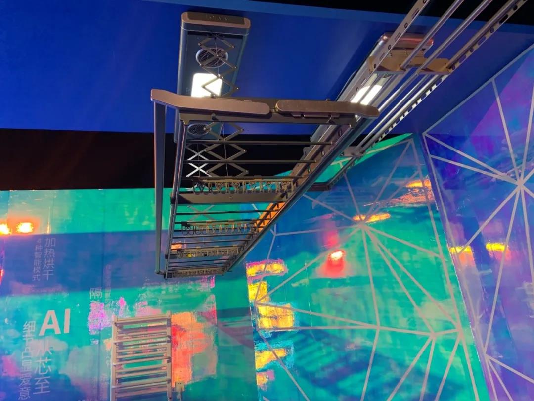 现场展示乐鱼水晶款智能晾衣机,集自动下降,智能干衣、消毒杀菌功能于一身,一站式解决晾晒难题,外观融入了施华洛世奇®元素,独特切割的纯净璀璨水晶邂逅匠心巧思的智能晾晒,天生智能与闪耀浪漫发生了碰撞。